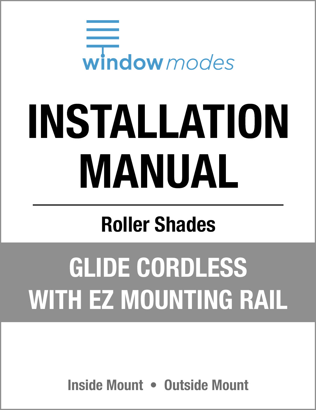 Glide Cordless with EZ Mounting Rail Window ModesGlide Cordless with EZ Mounting Rail INSTALLATION INSTRUCTIONS - ROLLER SHADES - GLIDE CORDLESS WITH EZ MOUNTING RAIL INSTALLATION MANUAL GLIDE CORDLESS WITH EZ MOUNTING RAIL INSTALLATION VIDEO GLIDE CORDLESS WITH EZ MOUNTING RAIL